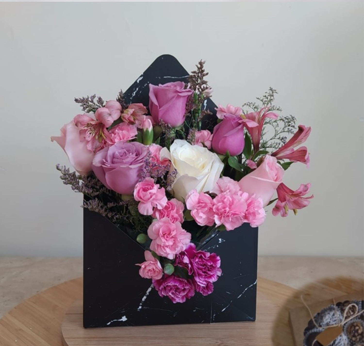 Puedes elegir un arreglo de flores y/o pastel